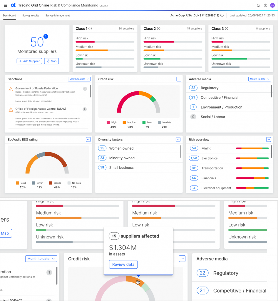 TGO has one of the more analytics-focused dashboards in the OT family of products, making it a good example for validating the design elements. This application deals with Risk & Compliance monitoring, so there are some specific design challenges.