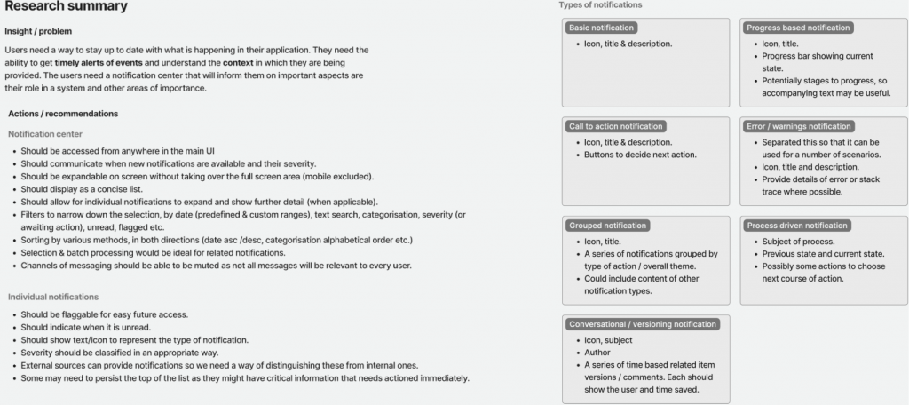 With many rounds of reviews, deliberations and coming to a consensus as group we are able to find a suitable solution. I could then build out the documentation for the notification centre and provide clear guidance to product teams for how to build this pattern out for their product.